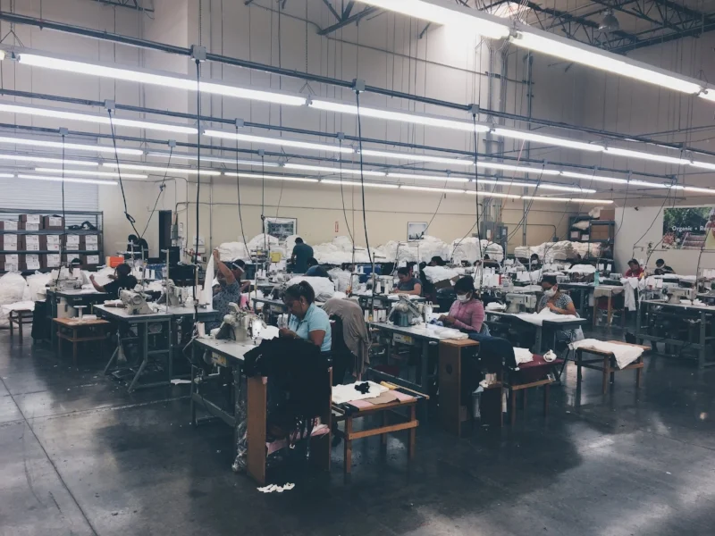 We are the factory.  We operate our own factory to ensure our standards and values are fully executed, especially when it comes to treating our employees well.  We have 80 yards of cutting space and 43 sewing machines, producing 40,000 units per month on average.